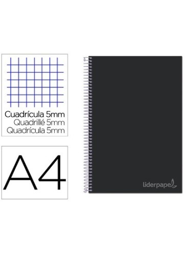 CUADERNO ESPIRAL LIDERPAPEL A4 MICRO JOLLY TAPA FORRADA 140H 75 GR CUADRO 5MM 5 BANDAS 4 TALADROS COLOR NEGRO