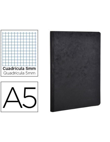 LIBRETA AGE-BAG TAPA CARTULINA LOMO COSIDO CUADRO 5 MM 96 HOJAS COLOR NEGRO 148X210 MM