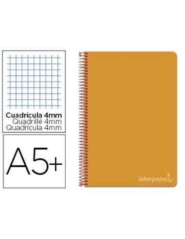 CUADERNO ESPIRAL LIDERPAPEL CUARTO WITTY TAPA DURA 80H 75GR CUADRO 4MM CON MARGEN COLOR NARANJA