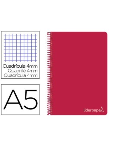 CUADERNO ESPIRAL LIDERPAPEL CUARTO WITTY TAPA DURA 80H 75GR CUADRO 4MM CON MARGEN COLOR ROJO