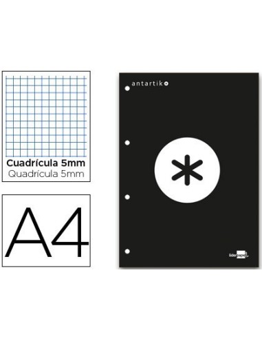 BLOC ENCOLADO LIDERPAPEL ANTARTIK CUADRO 5 MM A4 NATURAL 80 H 100 GR COLOR NEGRO