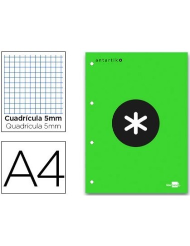 BLOC ENCOLADO LIDERPAPEL ANTARTIK CUADRO 5 MM A4 NATURAL 80 H 100 GR COLOR VERDE