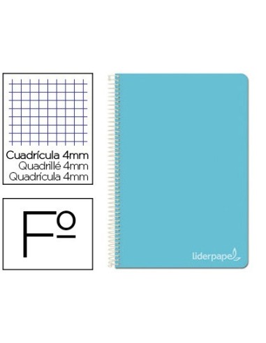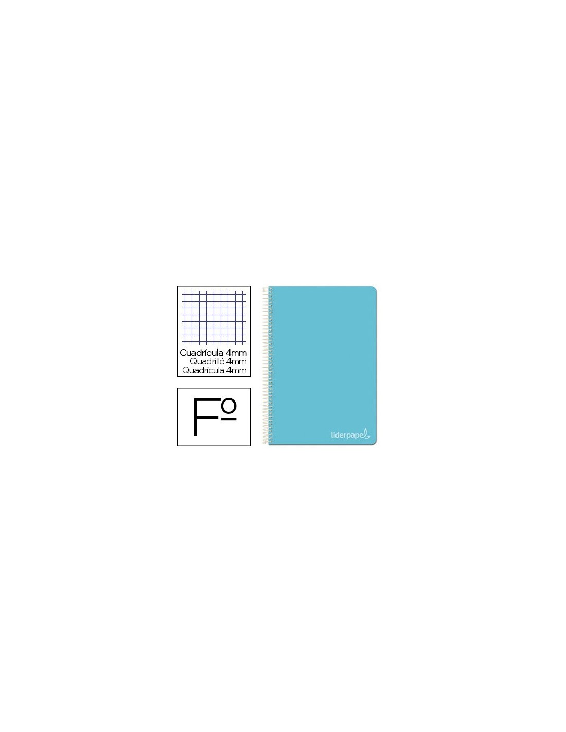 CUADERNO ESPIRAL LIDERPAPEL FOLIO WITTY TAPA DURA 80H 75GR CUADRO 4MM CON MARGEN COLOR CELESTE