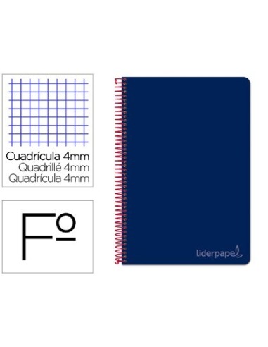 CUADERNO ESPIRAL LIDERPAPEL FOLIO WITTY TAPA DURA 80H 75GR CUADRO 4MM CON MARGEN COLOR AZUL MARINO