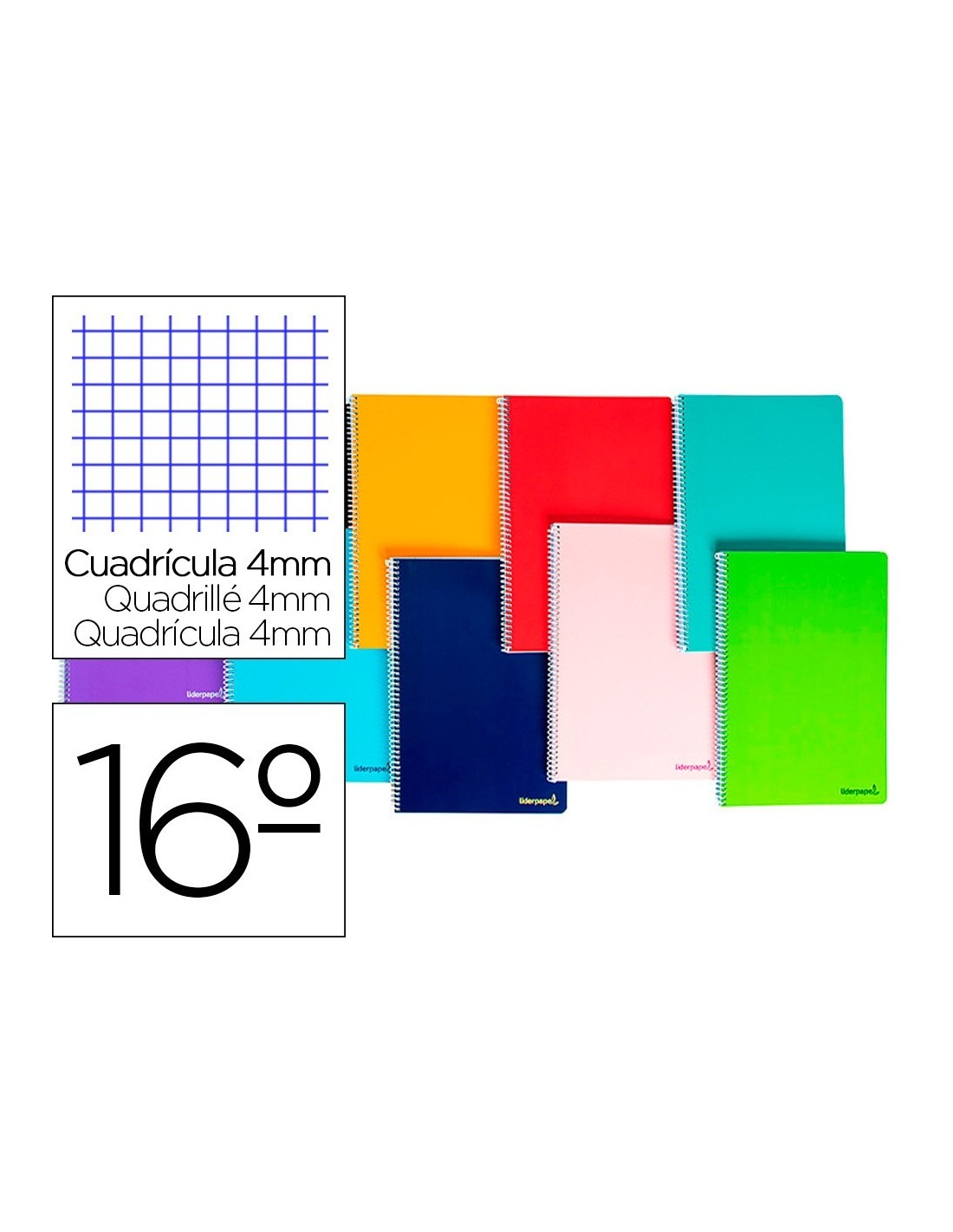 CUADERNO ESPIRAL LIDERPAPEL BOLSILLO DIECISEAVO SMART TAPA BLANDA 80H 60GR CUADRO 4MM COLORES SURTIDOS