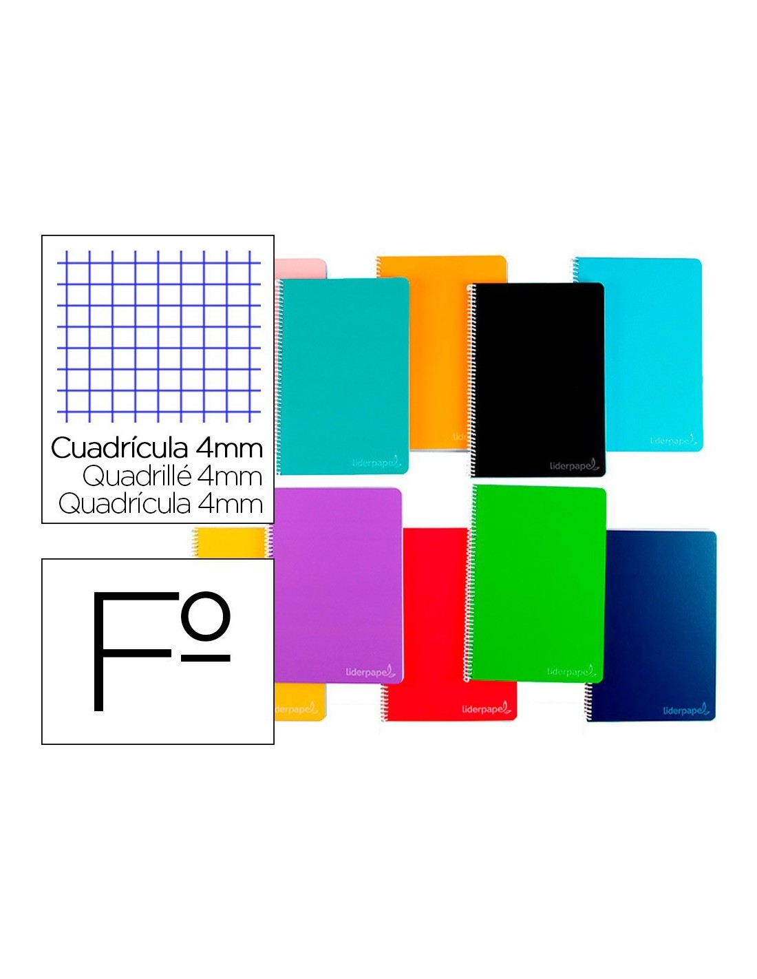 CUADERNO ESPIRAL LIDERPAPEL FOLIO WITTY TAPA DURA 80H 75GR CUADRO 4MM CON MARGEN COLORES SURTIDOS
