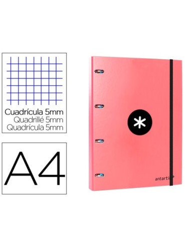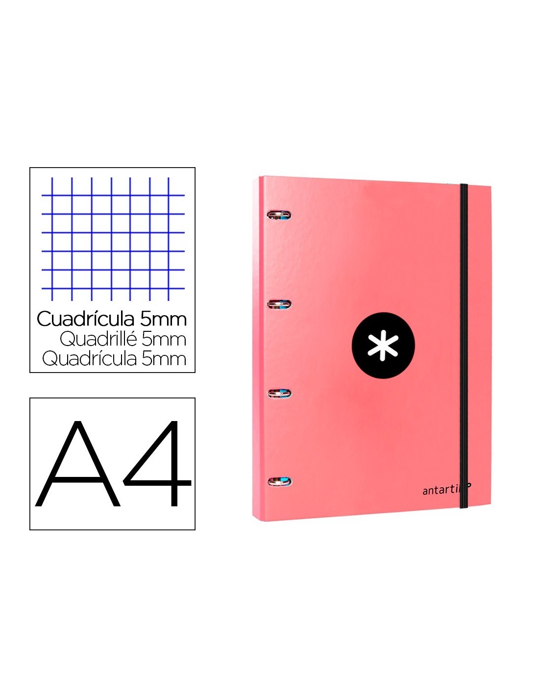 CARPETA CON RECAMBIO LIDERPAPEL ANTARTIK A4 CUADRO 5MM FORRADA 4 ANILLAS 25MM COLOR CORAL