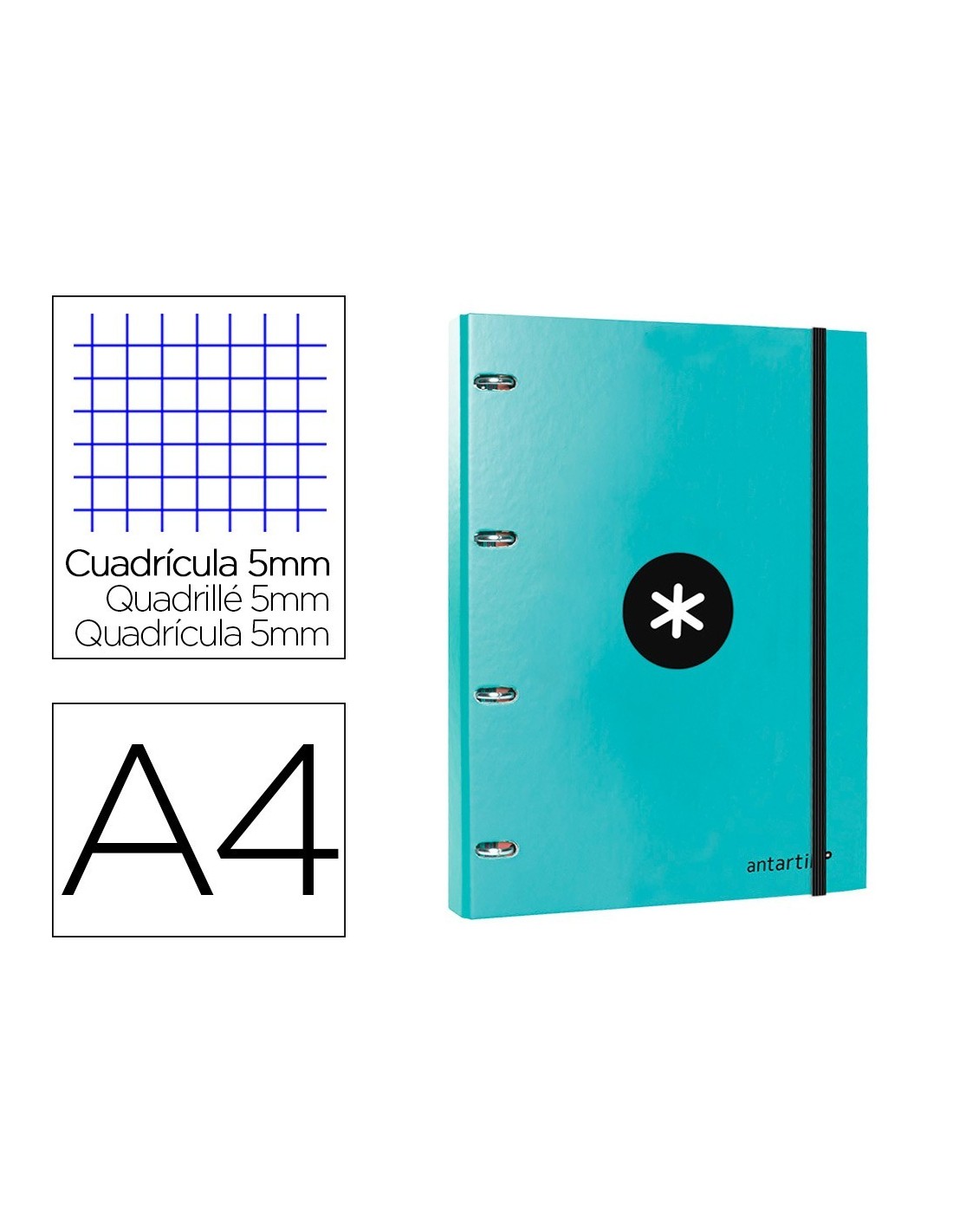 CARPETA CON RECAMBIO LIDERPAPEL ANTARTIK A4 CUADRO 5MM FORRADA 4 ANILLAS 25MM COLOR MENTA
