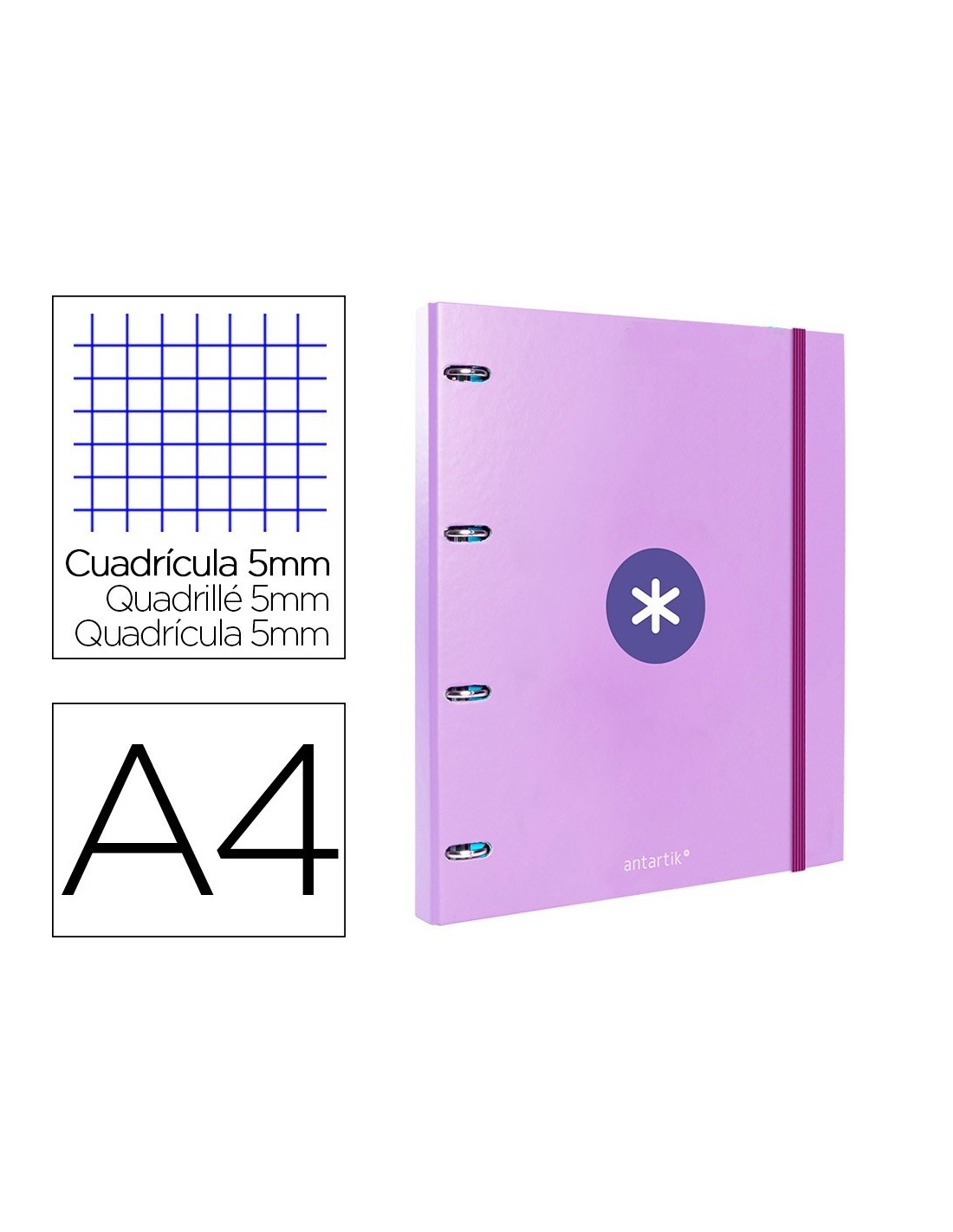 CARPETA CON RECAMBIO LIDERPAPEL ANTARTIK A4 CUADRO 5MM FORRADA 4 ANILLAS 25MM COLOR LAVANDA