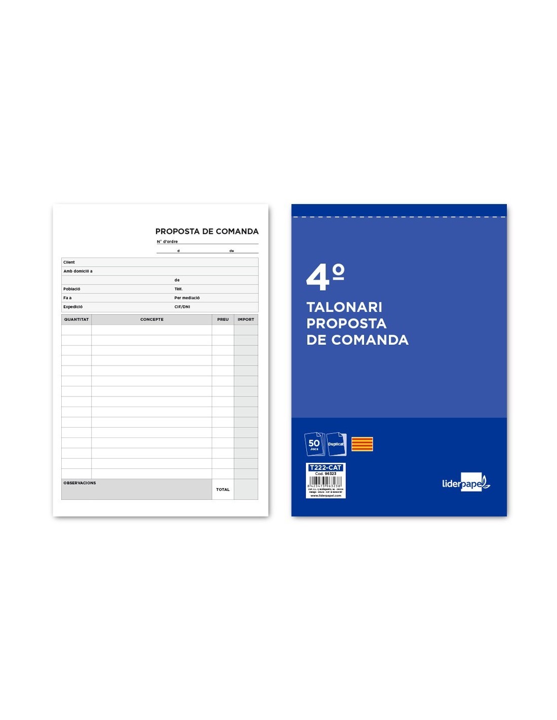 TALONARIO LIDERPAPEL PEDIDOS CUARTO ORIGINAL Y COPIA T222 TEXTO EN CATALAN