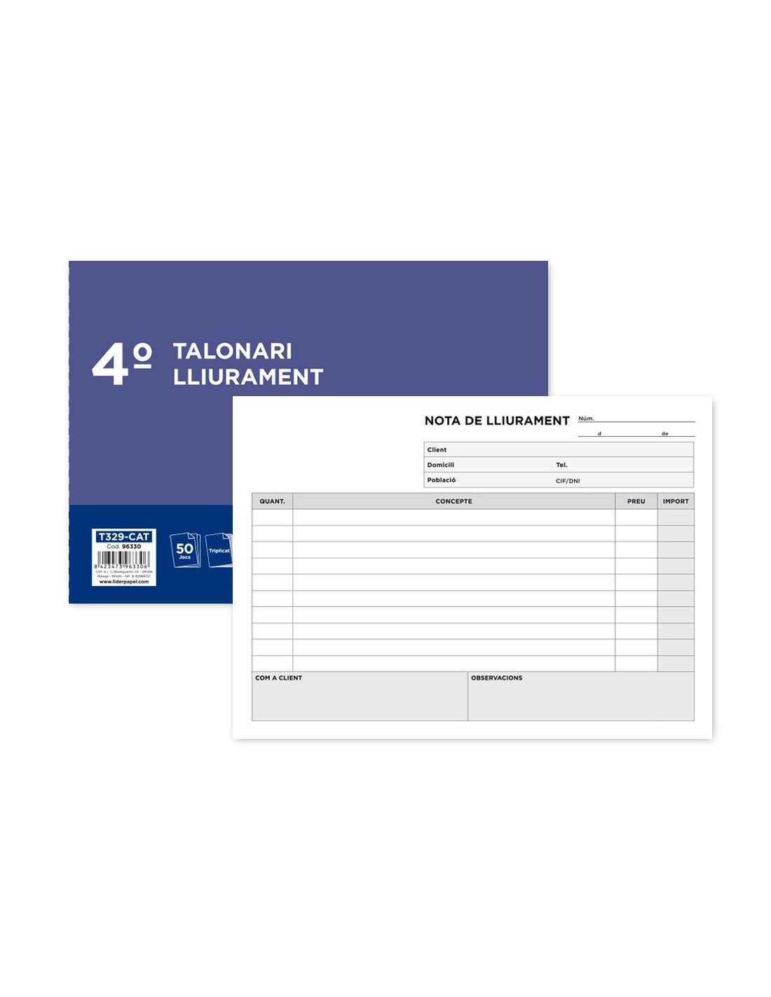 TALONARIO LIDERPAPEL ENTREGAS CUARTO ORIGINAL Y 2 COPIAS T329 APAISADO TEXTO EN CATALAN