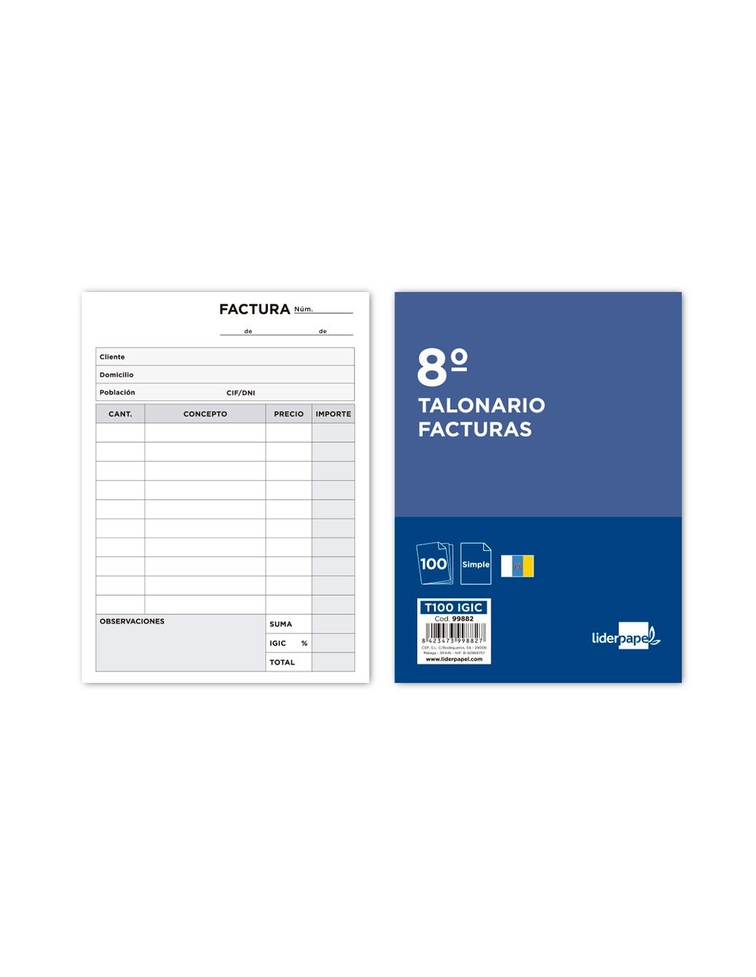 TALONARIO LIDERPAPEL FACTURAS 8. ORIGINAL T100 CON I.G.I.C.