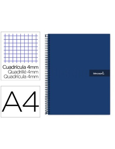 CUADERNO ESPIRAL LIDERPAPEL A4 CRAFTY TAPA FORRADA 80H 90 GR CUADRO 4MM CON MARGEN COLOR AZUL MARINO
