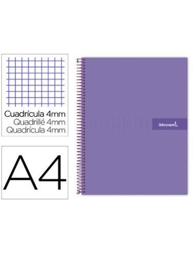 CUADERNO ESPIRAL LIDERPAPEL A4 CRAFTY TAPA FORRADA 80H 90 GR CUADRO 4MM CON MARGEN COLOR VIOLETA