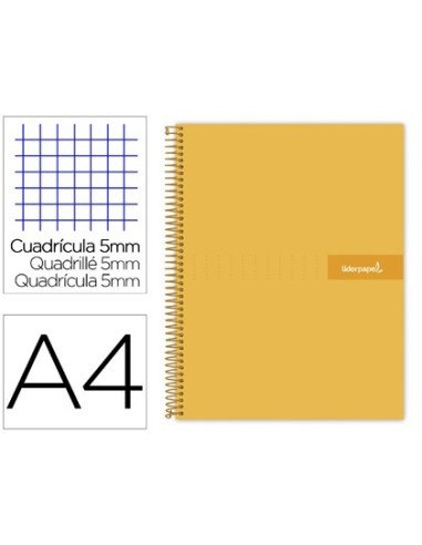 CUADERNO ESPIRAL LIDERPAPEL A4 MICRO CRAFTY TAPA FORRADA 120H 90 GR CUADRO 5 MM 5 BANDAS 4 COLORES COLOR NARANJA