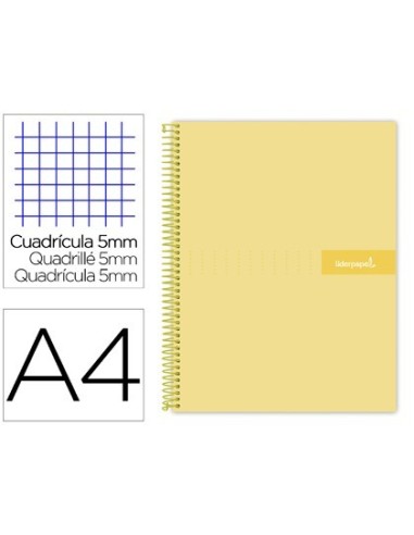 CUADERNO ESPIRAL LIDERPAPEL A4 MICRO CRAFTY TAPA FORRADA 120H 90GR CUADRO 5MM 5 BANDAS 4 TALADROS COLOR AMARILLO
