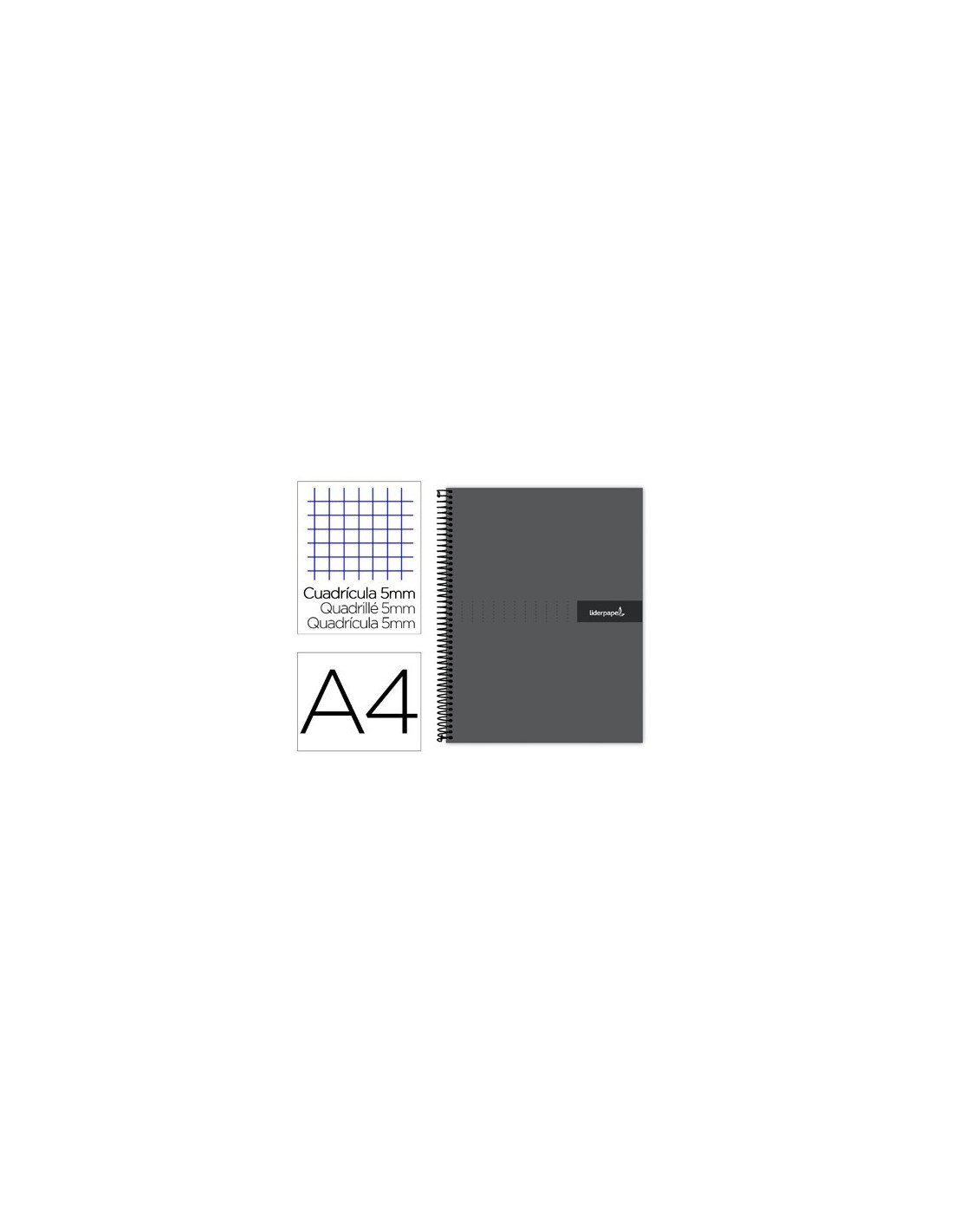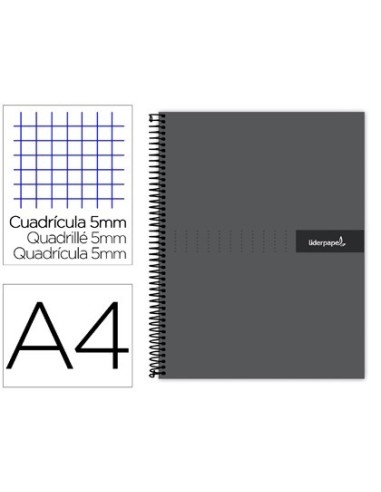 CUADERNO ESPIRAL LIDERPAPEL A4 MICRO CRAFTY TAPA FORRADA 120H 90 GR CUADRO 5 MM 5 BANDAS 4 COLORES COLOR NEGRO