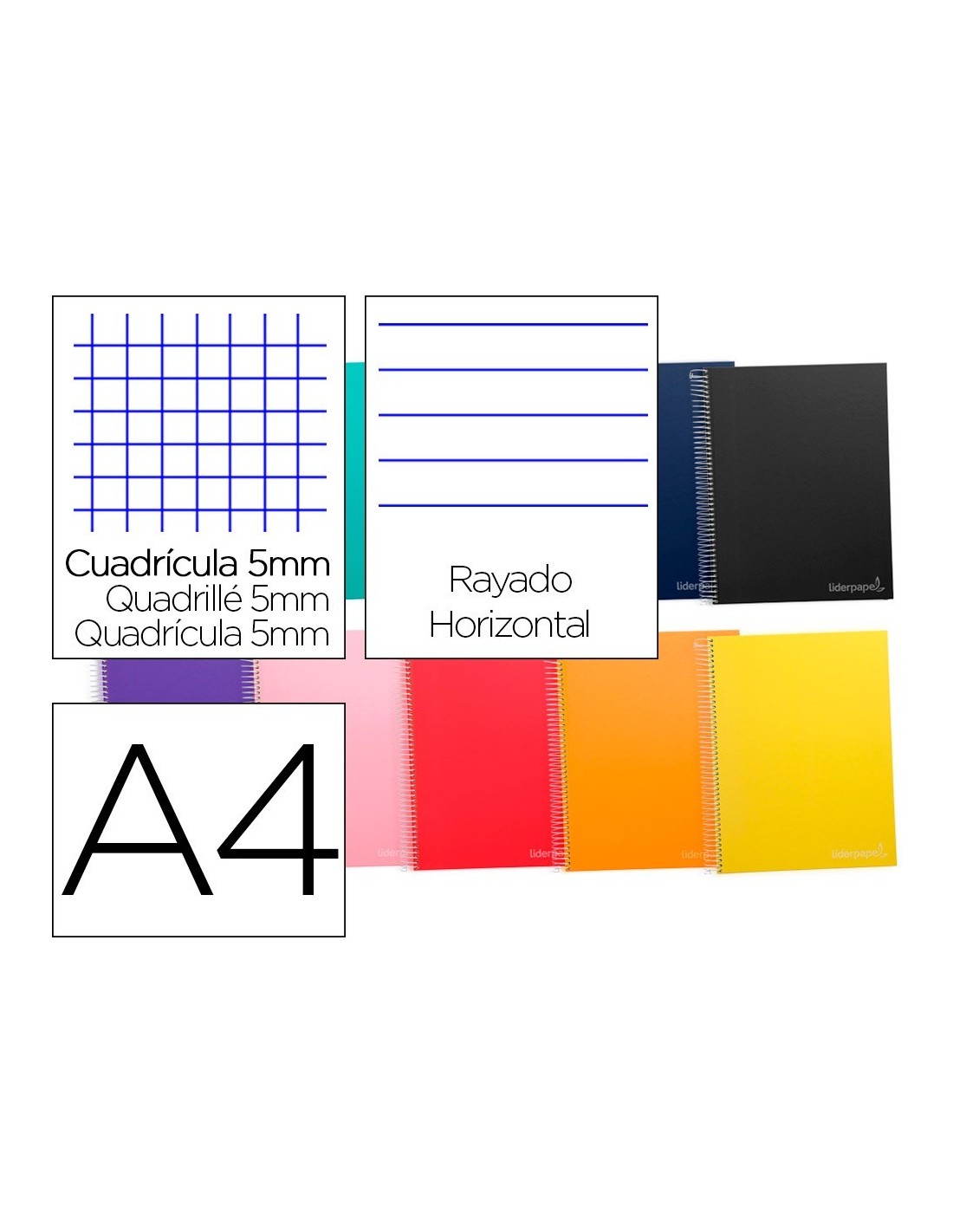 CUADERNO ESPIRAL LIDERPAPEL A4 MICRO JOLLY MULTIDISCIPLINA TAPA FORRADA 140H 75GR 28H 5MM 112H HRTAL.