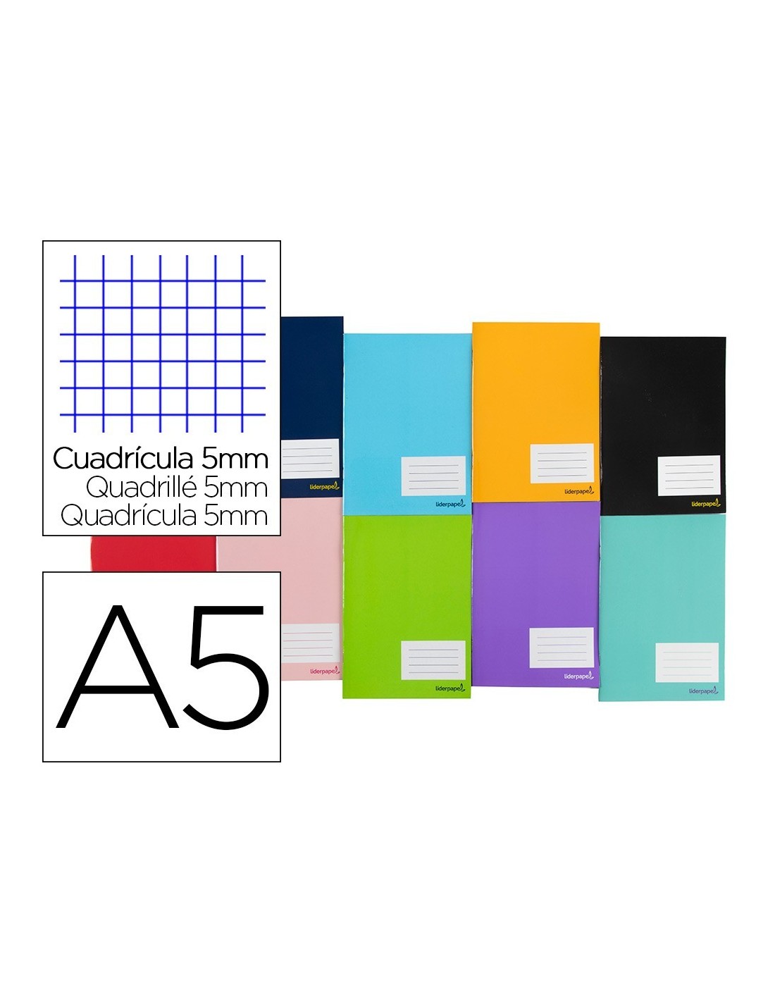 LIBRETA LIDERPAPEL SMART A5 TAPA BLANDA 80 HOJAS 60 G/M2 CUADRO 5 MM CON MARGEN COLORES SURTIDOS