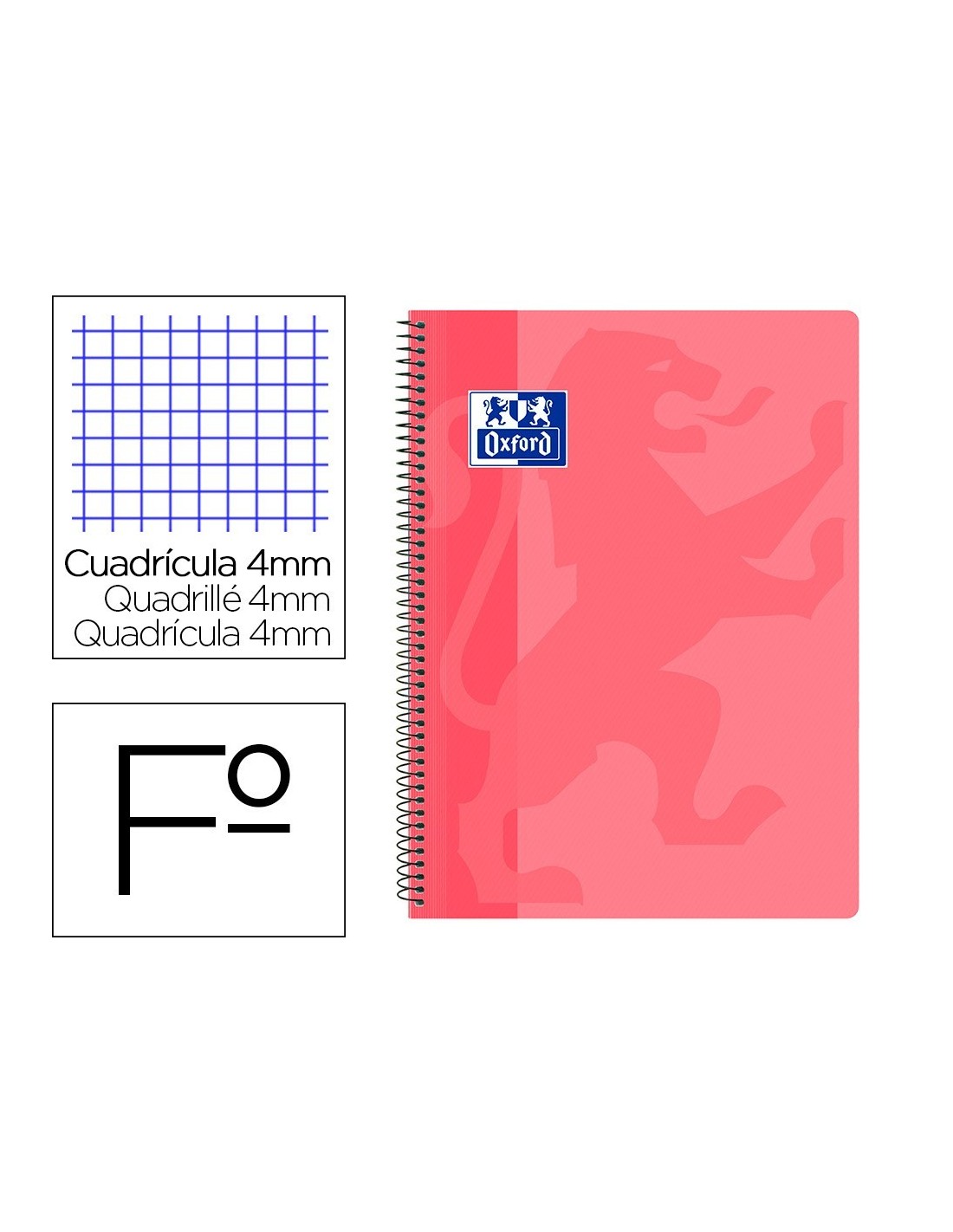 CUADERNO ESPIRAL OXFORD SCHOOL CLASSIC TAPA POLIPROPILENO FOLIO 80 HOJAS CUADRO 4 MM CON MARGEN ROSA