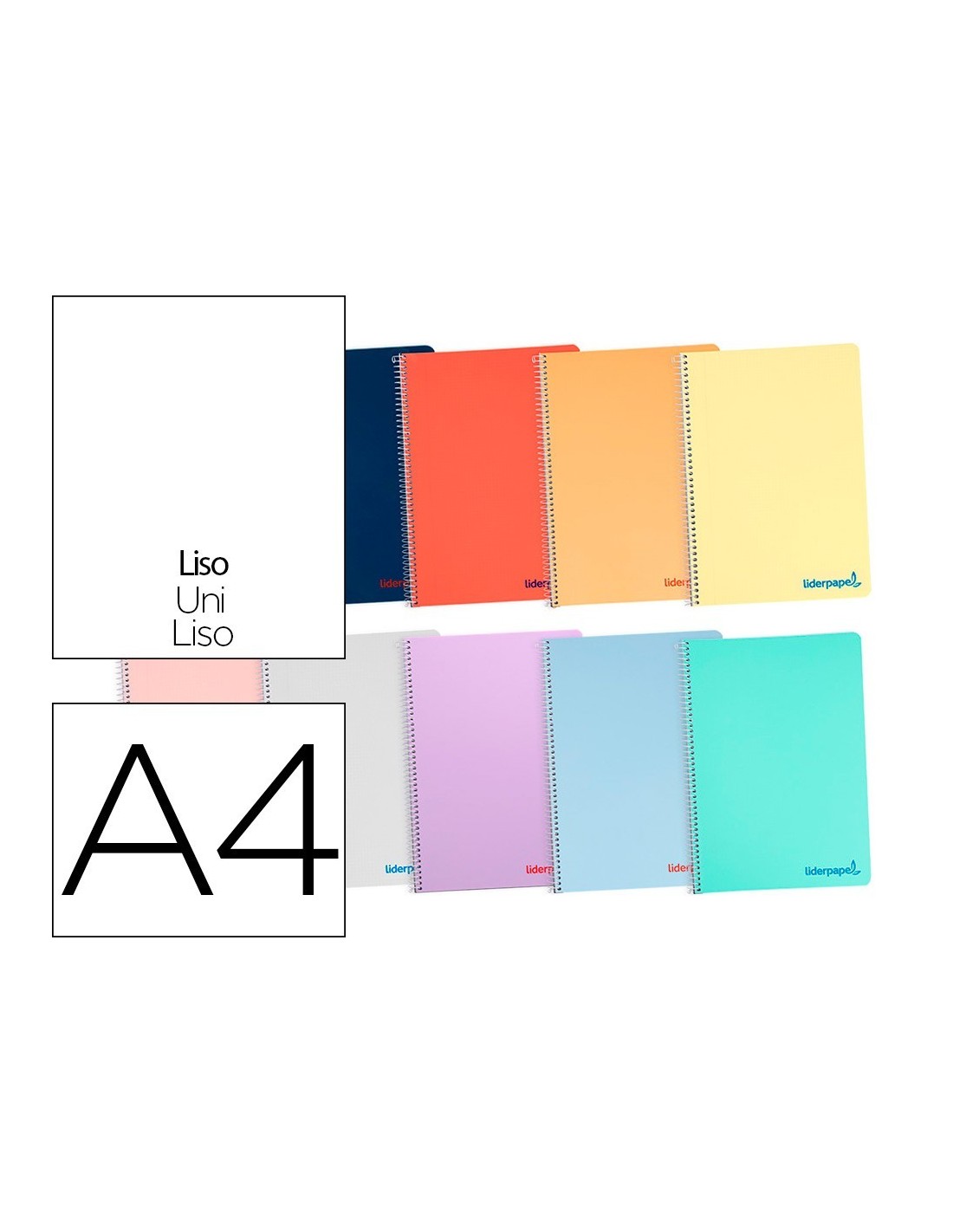 CUADERNO ESPIRAL LIDERPAPEL A4 WONDER TAPA PLASTICO 80H 90 GR LISO COLORES SURTIDOS