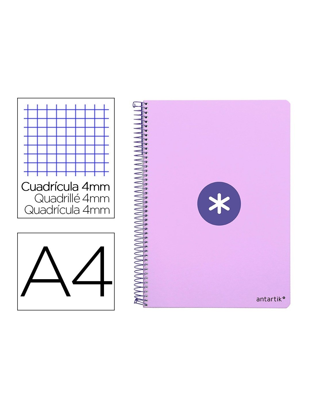 CUADERNO ESPIRAL LIDERPAPEL A4 ANTARTIK TAPA DURA 80H 100GR CUADRO 4MM CON MARGEN COLOR LAVANDA