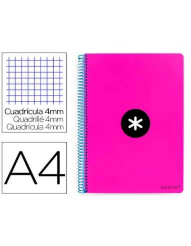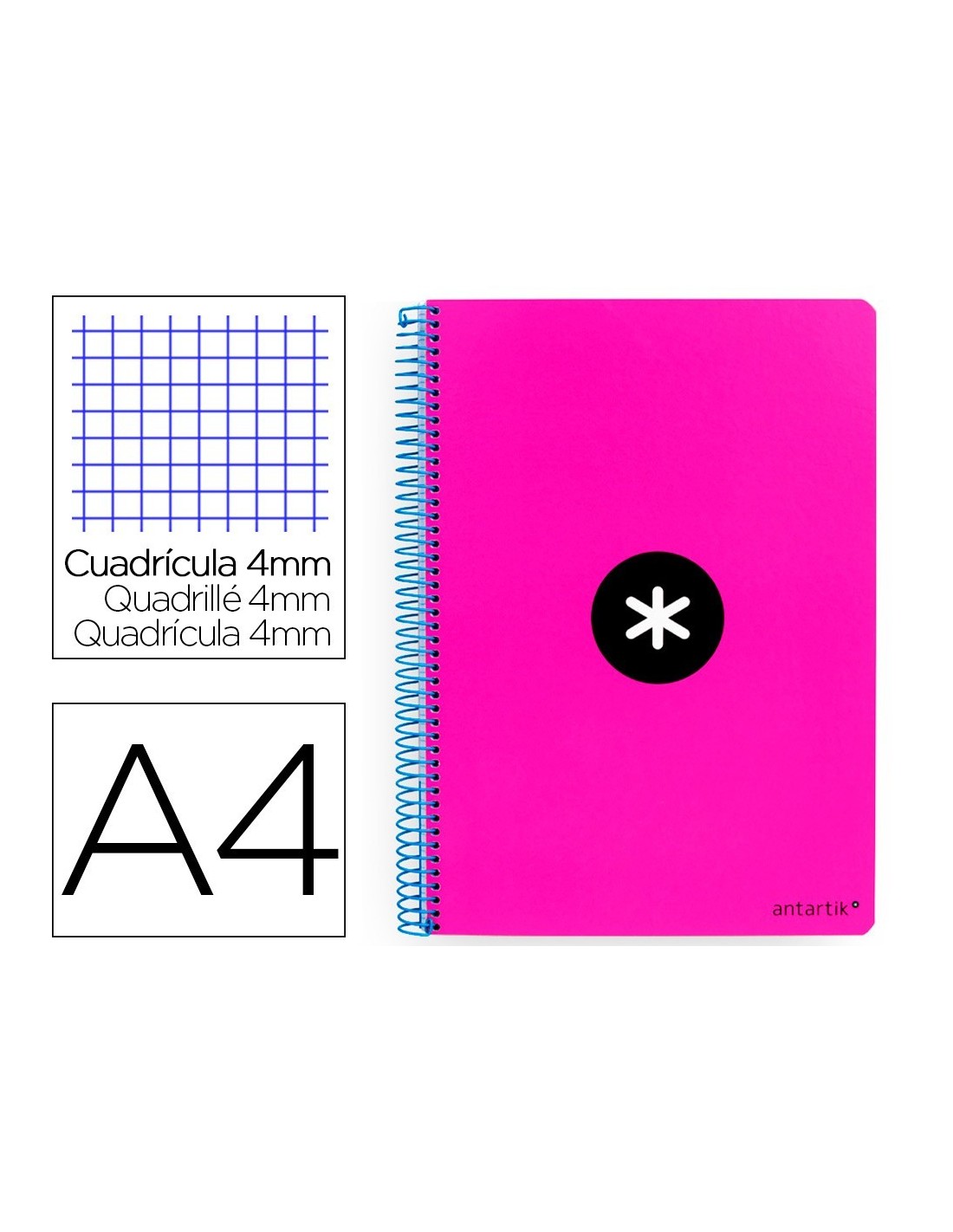 CUADERNO ESPIRAL LIDERPAPEL A4 ANTARTIK TAPA DURA 80H 100GR CUADRO 4MM CON MARGEN COLOR ROSA FLUOR