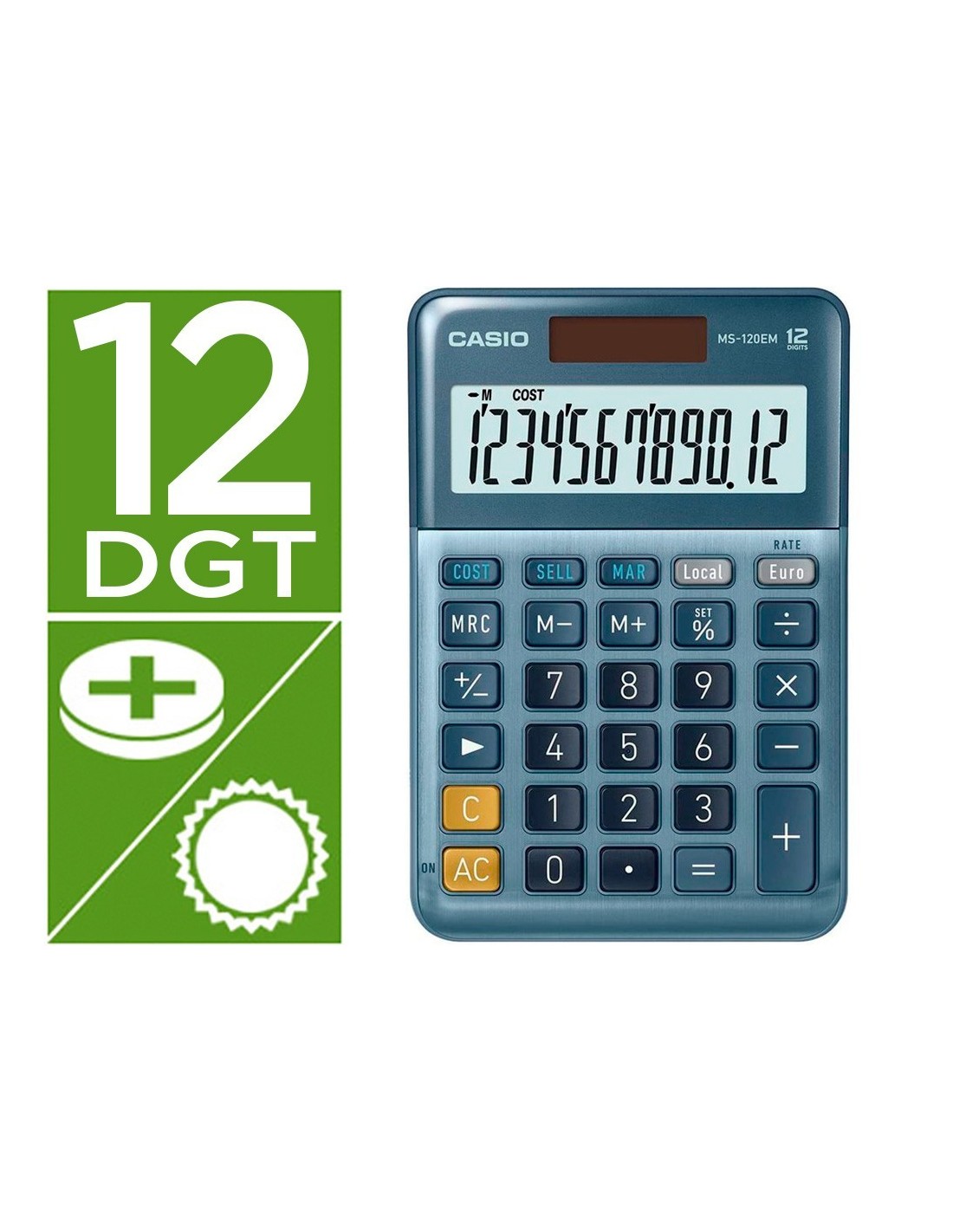 CALCULADORA CASIO MS-120EM SOBREMESA 12 DIGITOS TX +/- TECLA DOBLE CERO COLOR AZUL