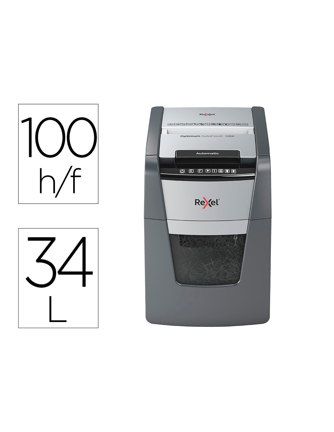 DESTRUCTORA DE DOCUMENTOS REXEL OPTIMUM AUTO+ 100X EU CAPACIDAD 100 HOJAS PARTICULAS DESTRUYE GRAPAS
