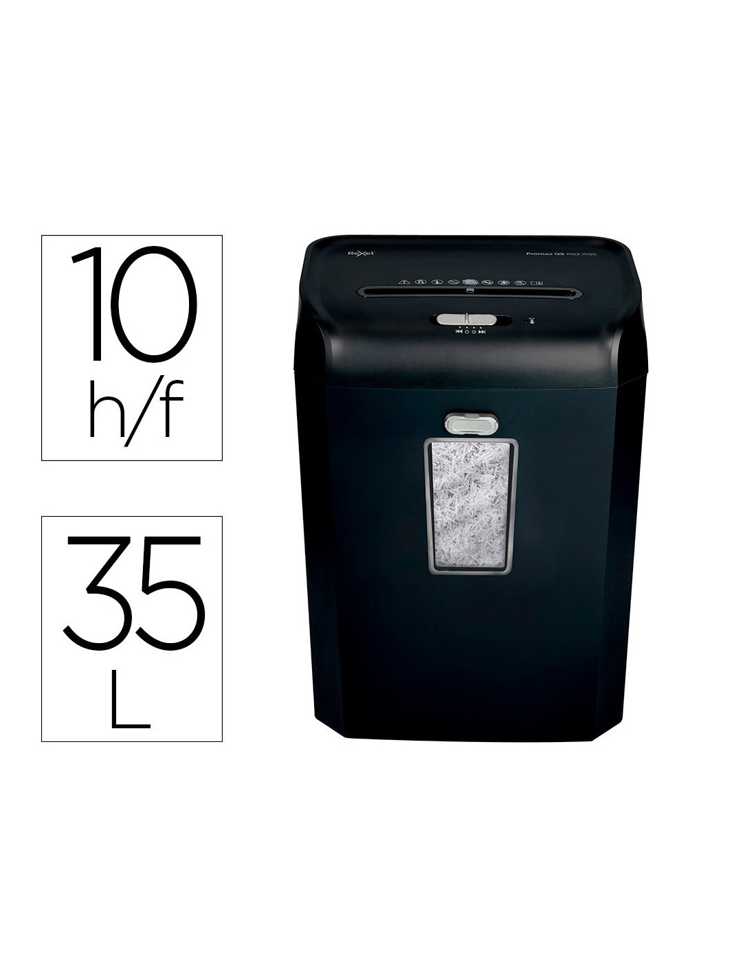 DESTRUCTORA DE DOCUMENTOS REXEL PROMAX QS RSX1035 CAPACIDAD 10 HOJAS PARTICULAS DESTRUYE GRAPAS CLIPS Y