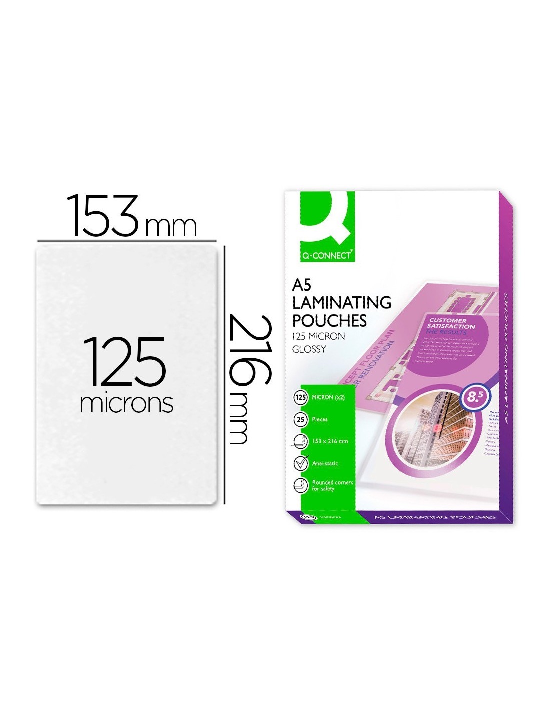 BOLSA DE PLASTIFICAR Q-CONNECT 153 X 216 MM 125 MC DIN A5 AUTOADHESIVAS CAJA DE 25 UNIDADES