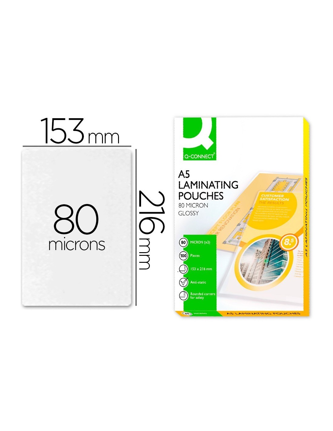 BOLSA DE PLASTIFICAR Q-CONNECT 153 X 216 MM 80MC DIN A5 CAJA DE 100 UNIDADES