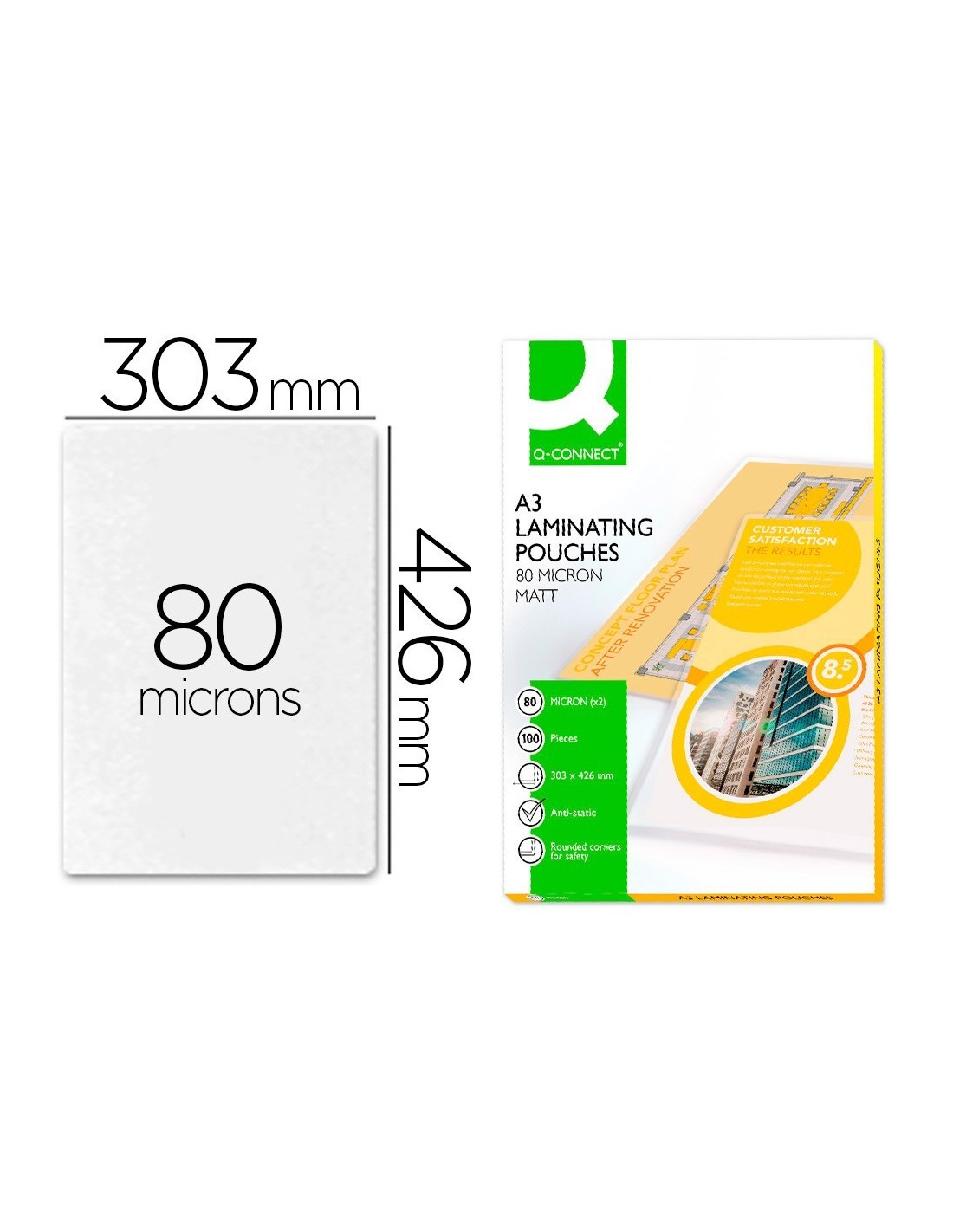 BOLSA DE PLASTIFICAR Q-CONNECT 303 X 426 MM 80 MC DIN A3 MATE CAJA DE 100 UNIDADES