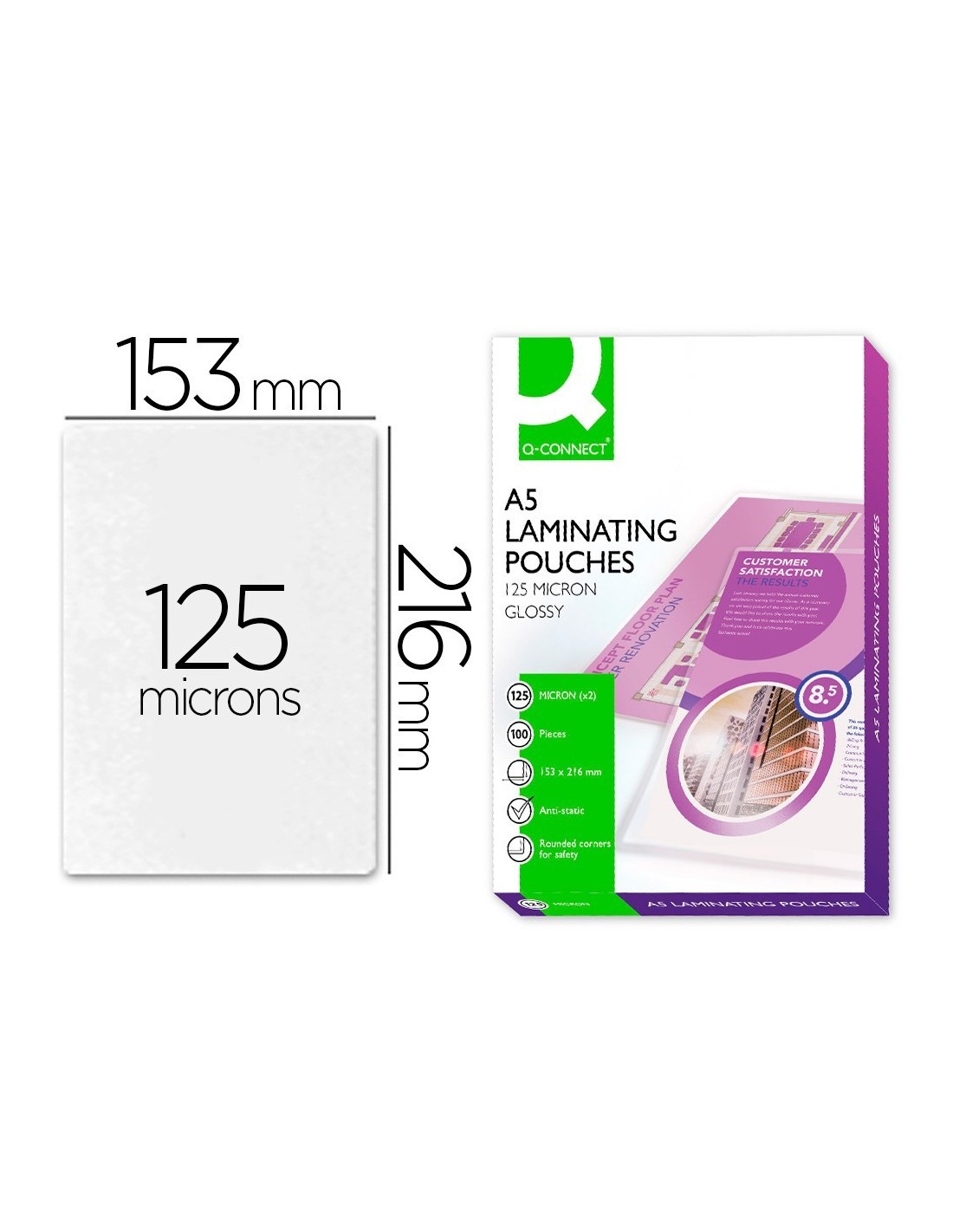BOLSA DE PLASTIFICAR Q-CONNECT 153 X 216 MM 125 MC DIN A5 A CAJA DE 100 UNIDADES