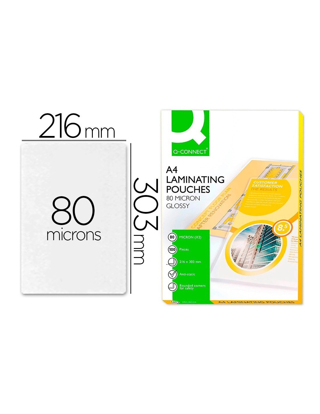BOLSA DE PLASTIFICAR Q-CONNECT 303 X 216 MM 80 MC DIN A4 CAJA DE 100 UNIDADES