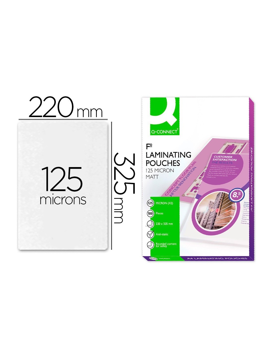 BOLSA DE PLASTIFICAR Q-CONNECT 325 X 220 MM 125 MC FOLIO CAJA DE 100 UNIDADES