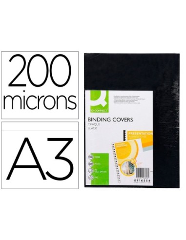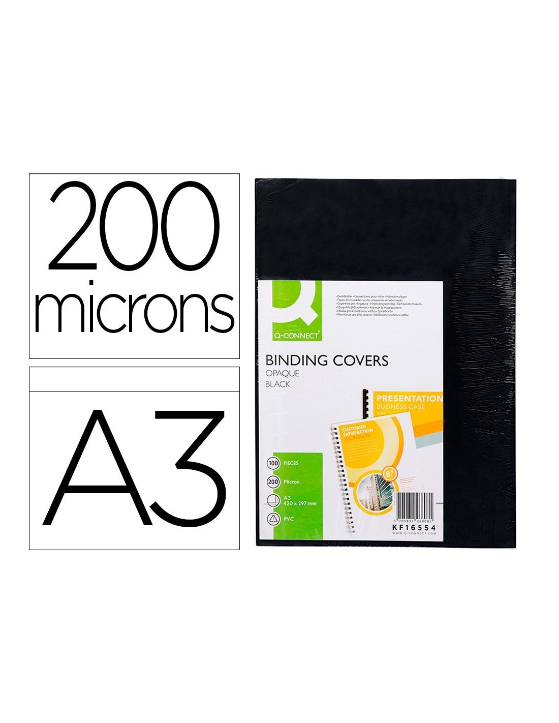 TAPA DE ENCUADERNACION Q-CONNECT PVC DIN A3 OPACA NEGRA 200 MC CAJA DE 100 UNIDADES