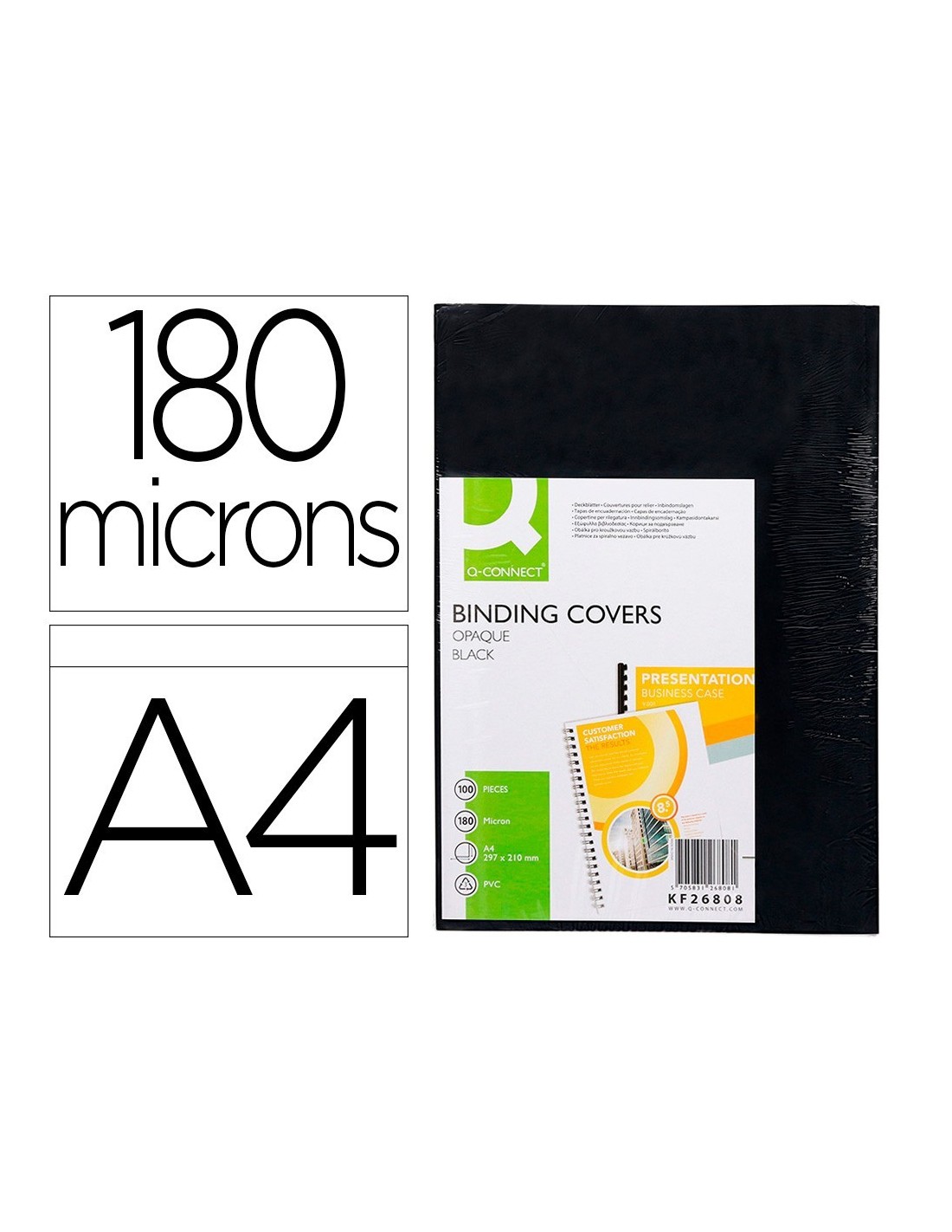 TAPA DE ENCUADERNACION Q-CONNECT PVC DIN A4 OPACA NEGRA 180 MICRAS CAJA DE 100 UNIDADES