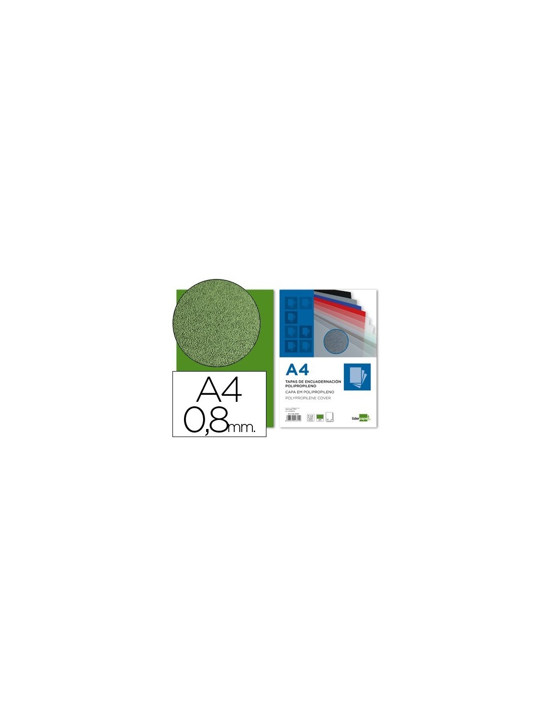TAPA ENCUADERNACION LIDERPAPEL POLIPROPILENO A4 0.8MM VERDE OPACO PAQUETE DE 50 UNIDADES