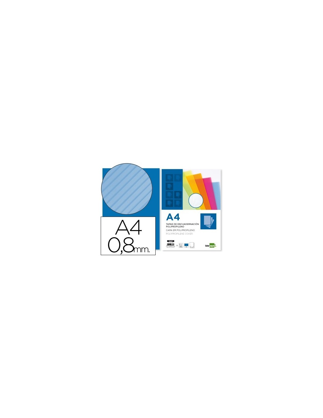 TAPA ENCUAD LP PP ONDULADO A4 0.8 MM AZ PAQ 50 U Ver en Cátalogo Pag 16.