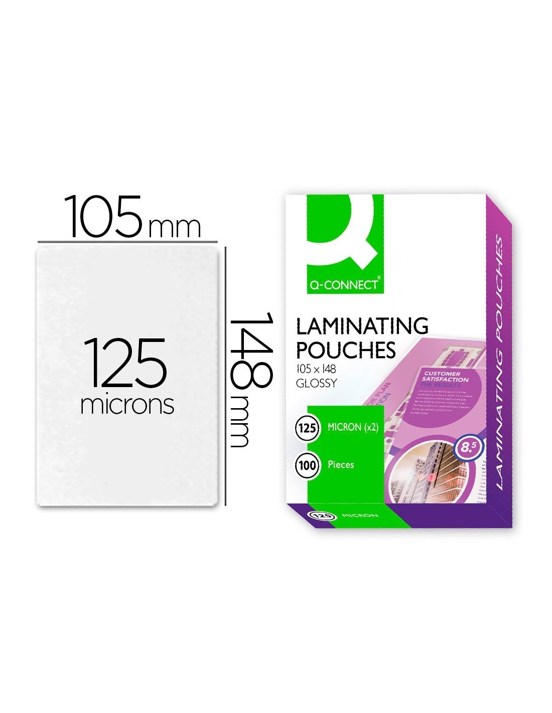 BOLSA DE PLASTIFICAR Q-CONNECT 105 X 148 MM DIN A6 125 MC CAJA DE 100 UNIDADES