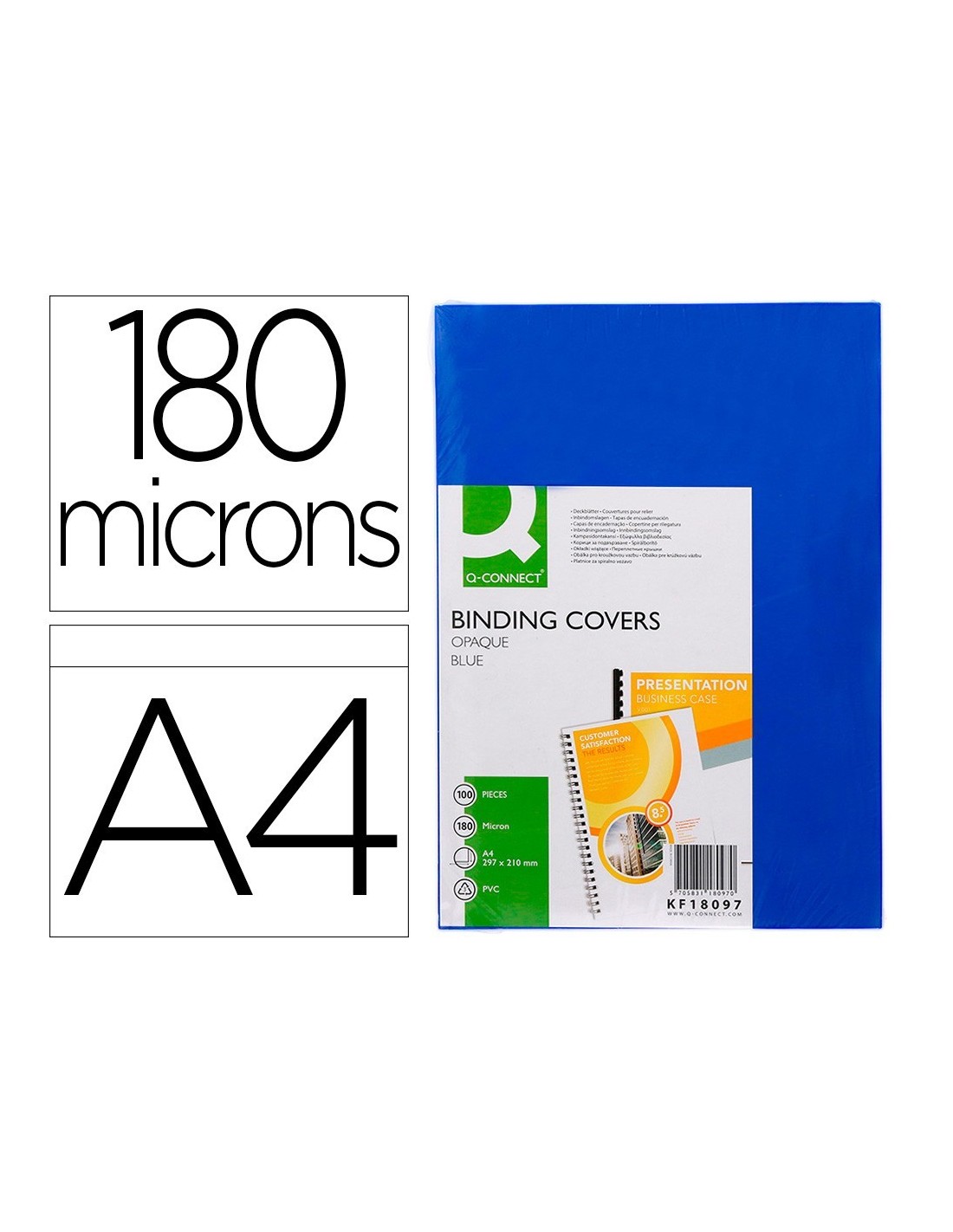 TAPA DE ENCUADERNACION Q-CONNECT PVC DIN A4 OPACA AZUL 180 MICRAS CAJA DE 100 UNIDADES