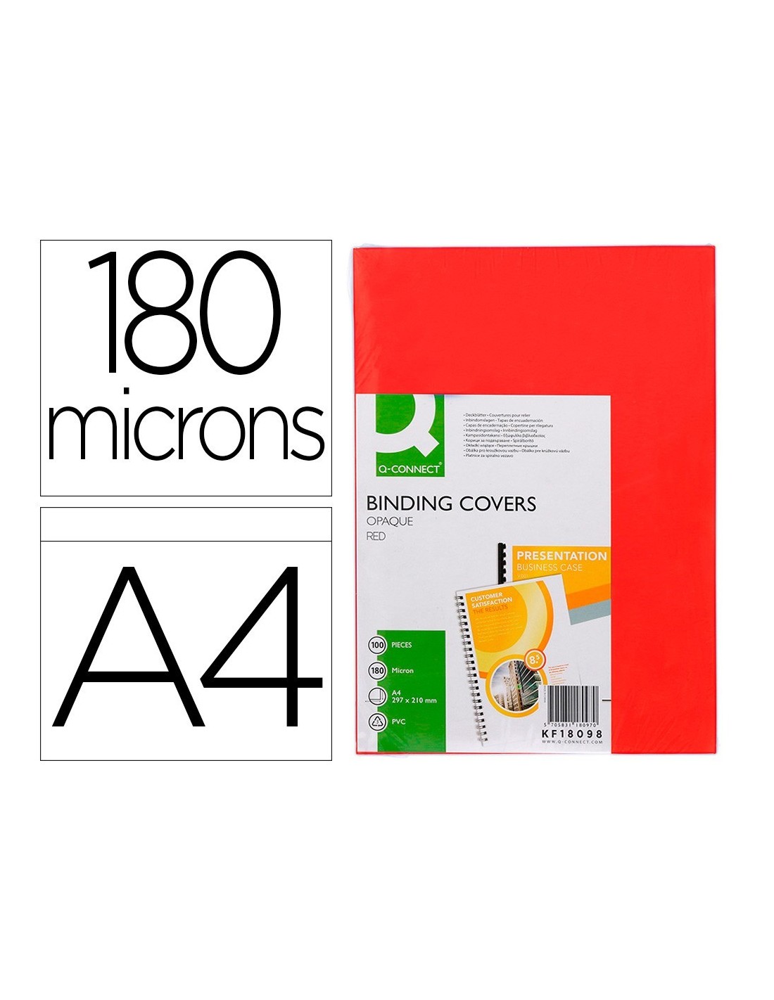 TAPA DE ENCUADERNACION Q-CONNECT PVC DIN A4 OPACA ROJO 180 MICRAS CAJA DE 100 UNIDADES