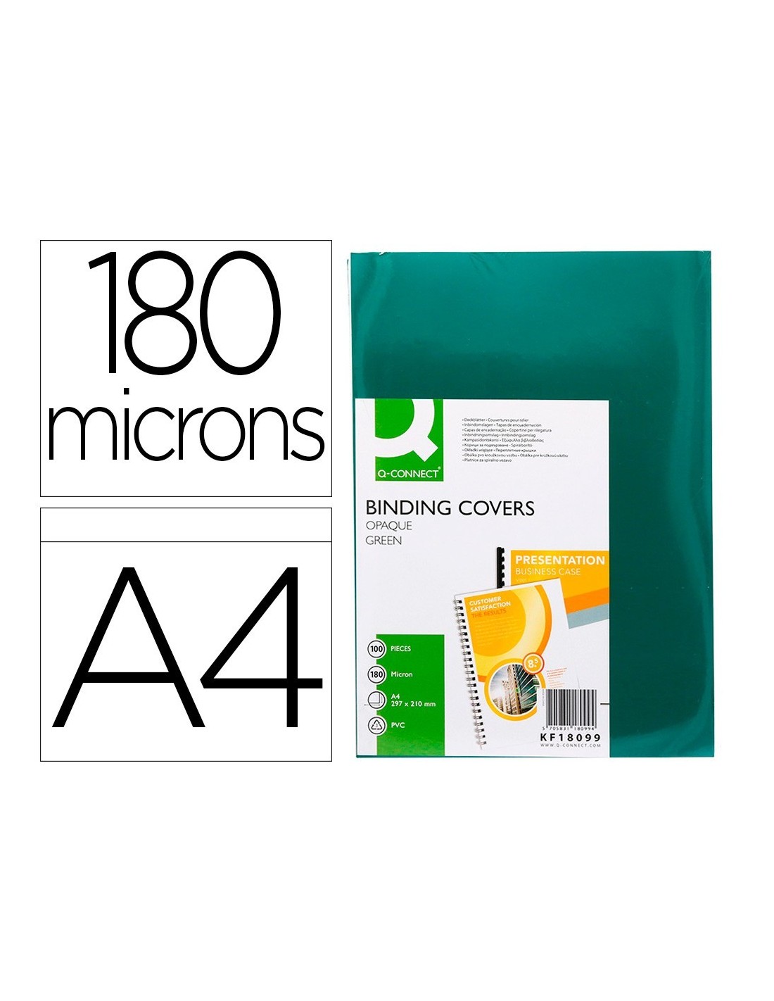 TAPA DE ENCUADERNACION Q-CONNECT PVC DIN A4 OPACA VERDE 180 MICRAS CAJA DE 100 UNIDADES