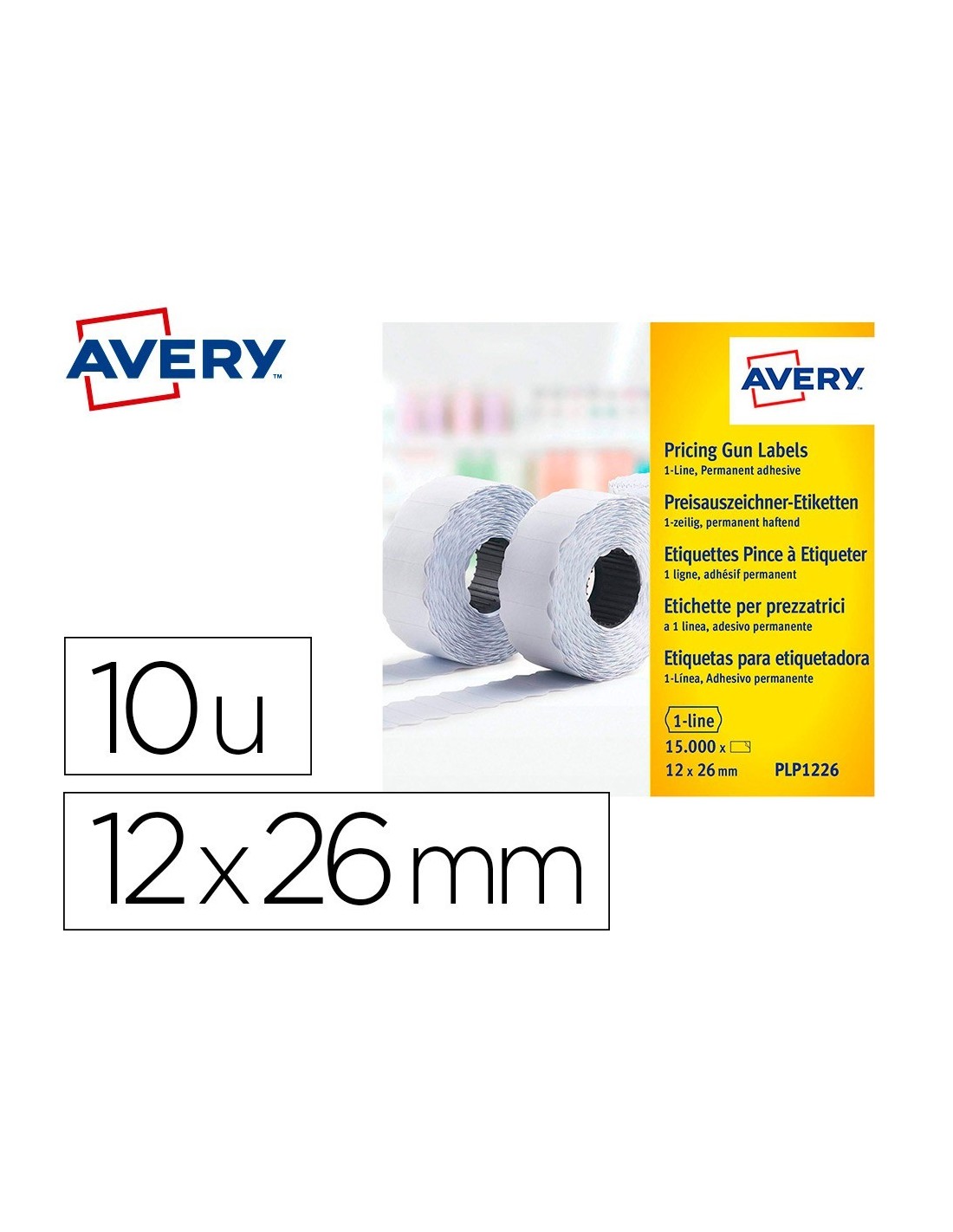 ETIQUETA AVERY 1 LINEA ADHESIVO PERMANENTE 26X12 MM BLANCA ROLLO 1500 UNIDADES CAJA DE 10 UNIDADES