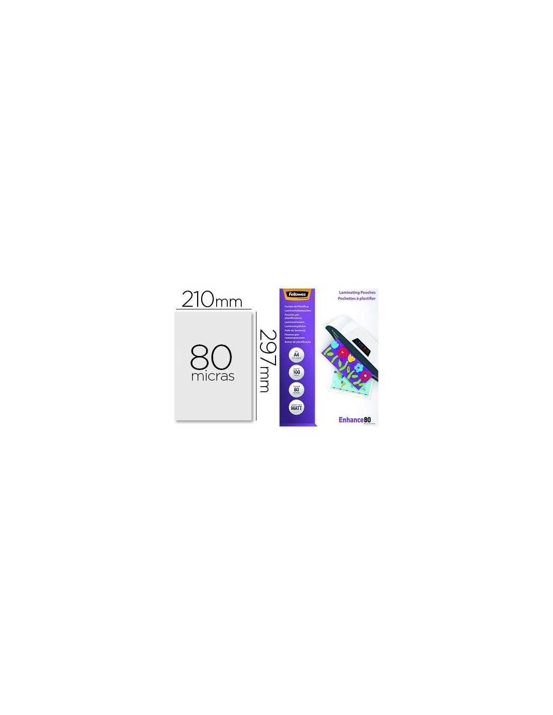 BOLSA DE PLASTIFICAR FELLOWES MATE DIN A4 80 MICRAS PACK 100 UNIDADES