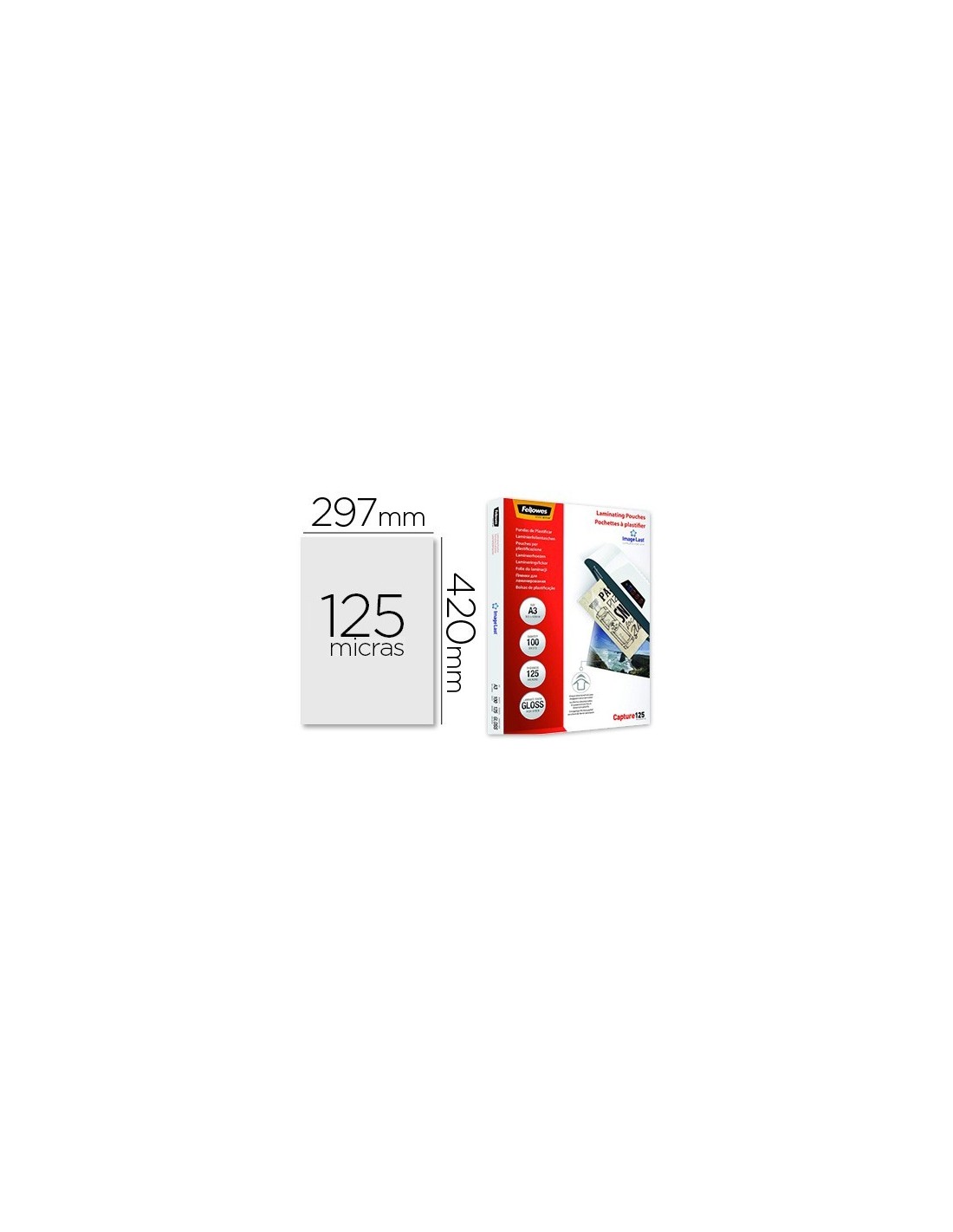 BOLSA DE PLASTIFICAR FELLOWES BRILLO DIN A3 125 MICRAS PACK DE 100 UNIDADES