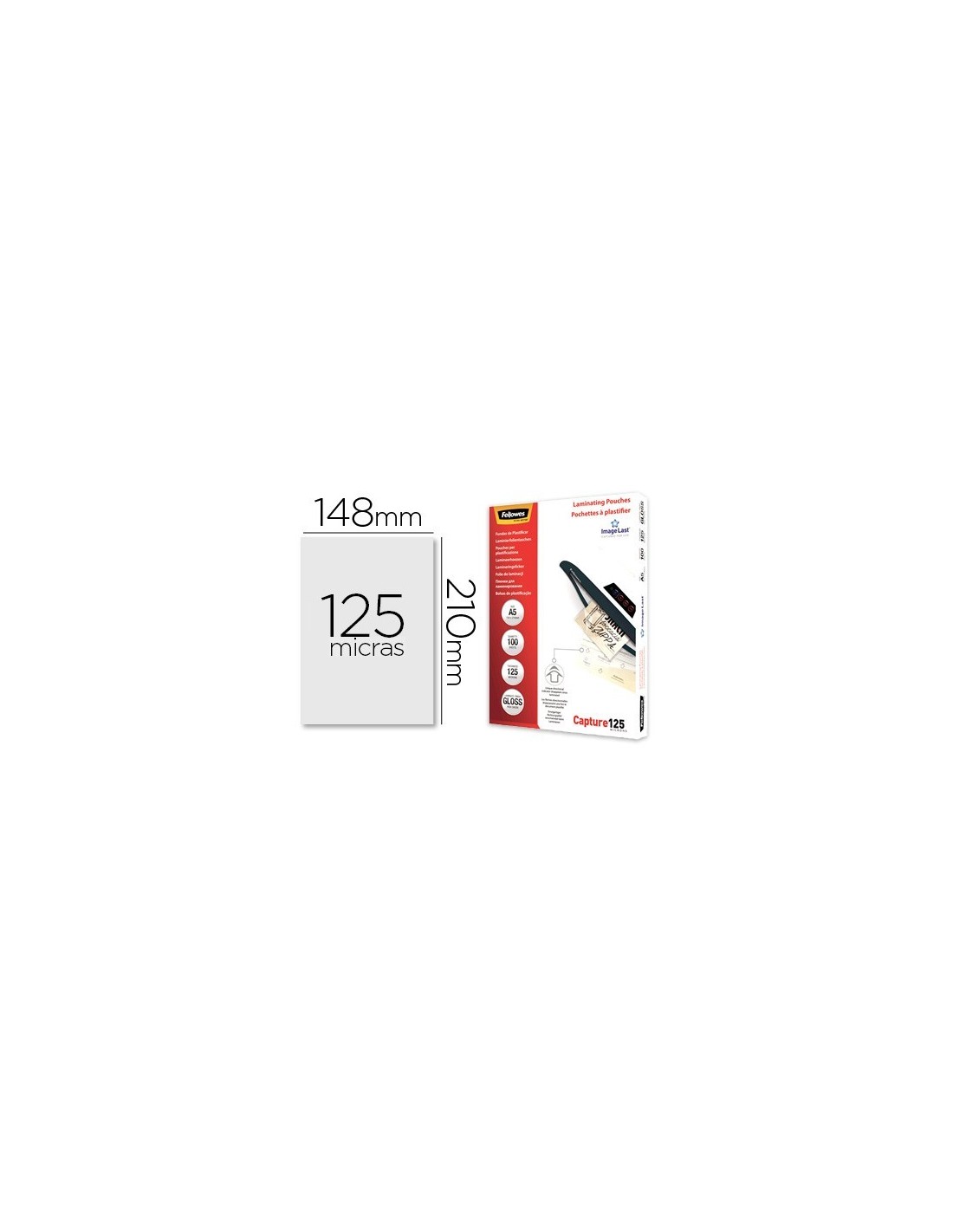 BOLSA DE PLASTIFICAR FELLOWES BRILLO DIN A5 125 MICRAS PACK 100 UNIDADES