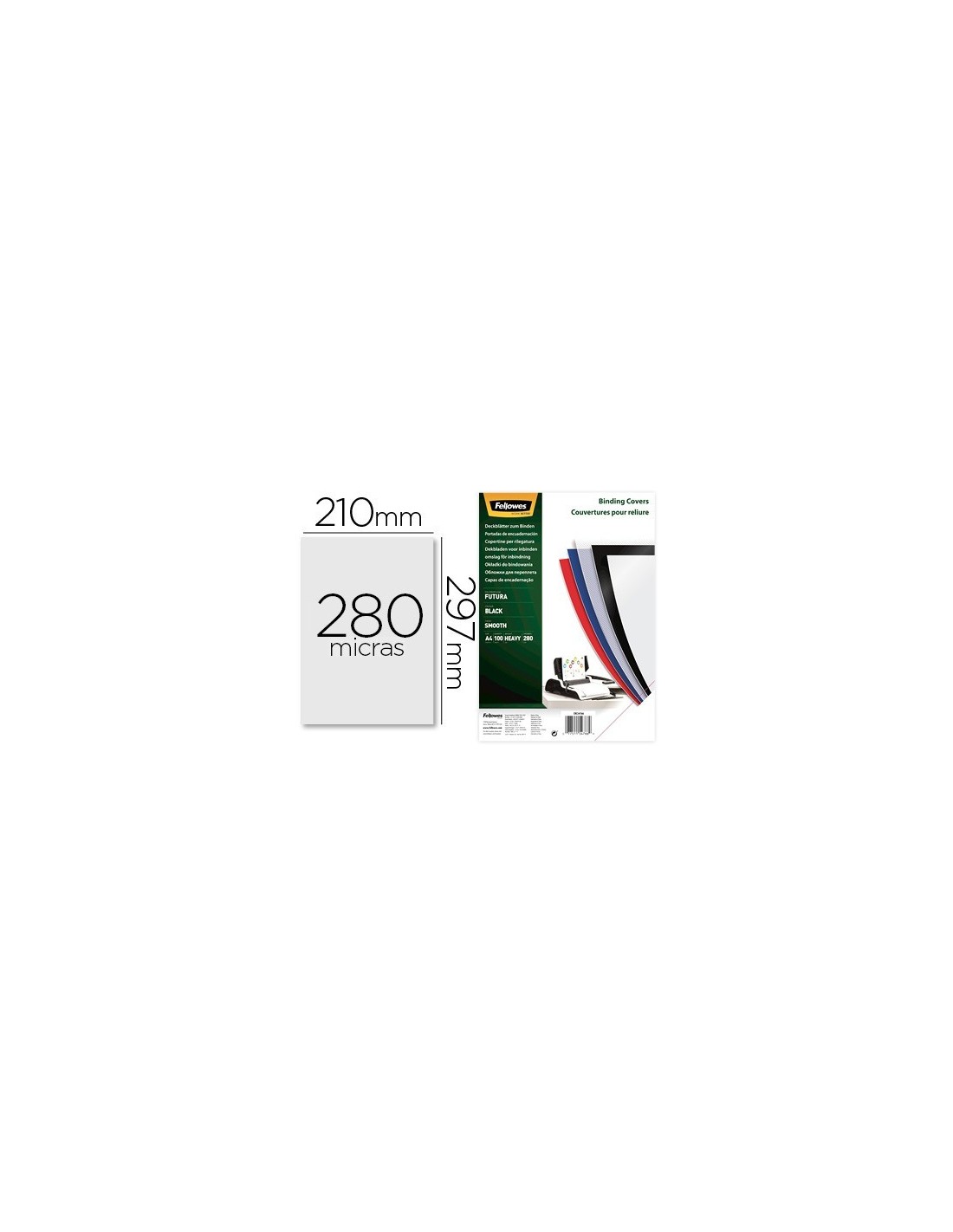 TAPA DE ENCUADERNACION FELLOWES DIN A4 POLIPROPILENO NEGRO 280 MICRAS PACK DE 100 UNIDADES