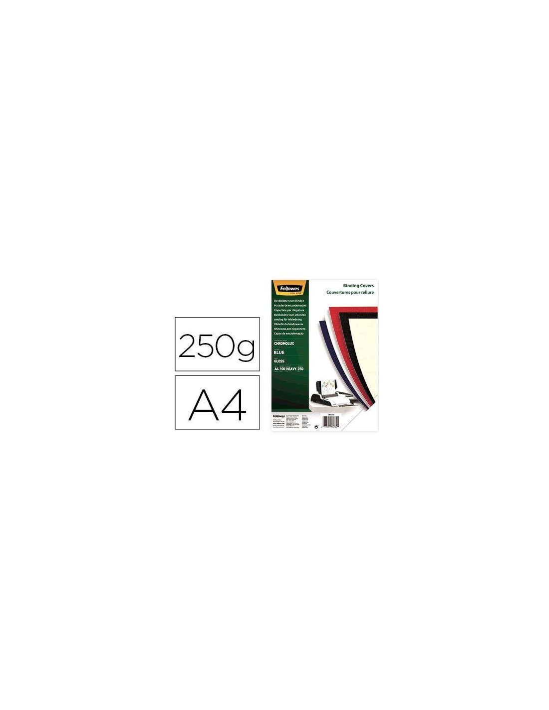 TAPA DE ENCUADERNACION FELLOWES DIN A4 CARTON BRILLO AZUL CHROMOLUX 250 GR PACK DE 100 UNIDADES